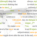An interactive language-based computer program, modeled after the classic arcade-style game Snake. In the piece, users direct and build a snake constructed from letters, forming words and phrases based on a dynamically generated text.