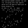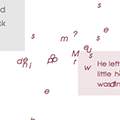 A short poem, originally written as a lipogram, which has been adapted to a digital platform. The letters of the poem reveal themselves to the viewer over time, slowly finding their correct locations within the poem.