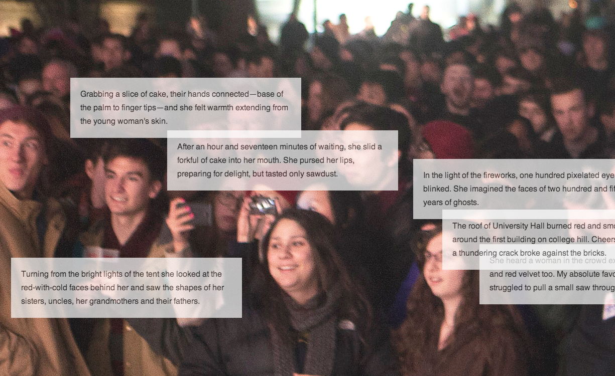250th Micro Fictions is a quick study created for the Theories in Action conference at Brown University in April 2014. It was demoed during the panel "Crafting a Social Narrative in the Digital Age" which also featured presenters Marc Briz and Christine Pappas.