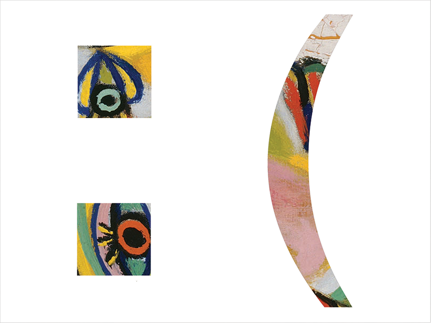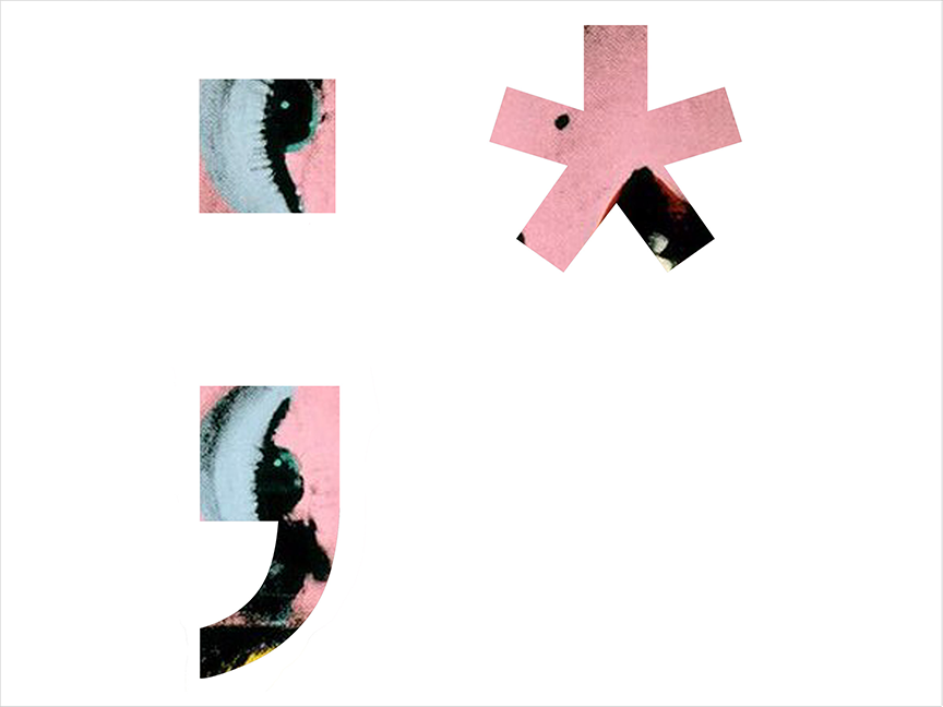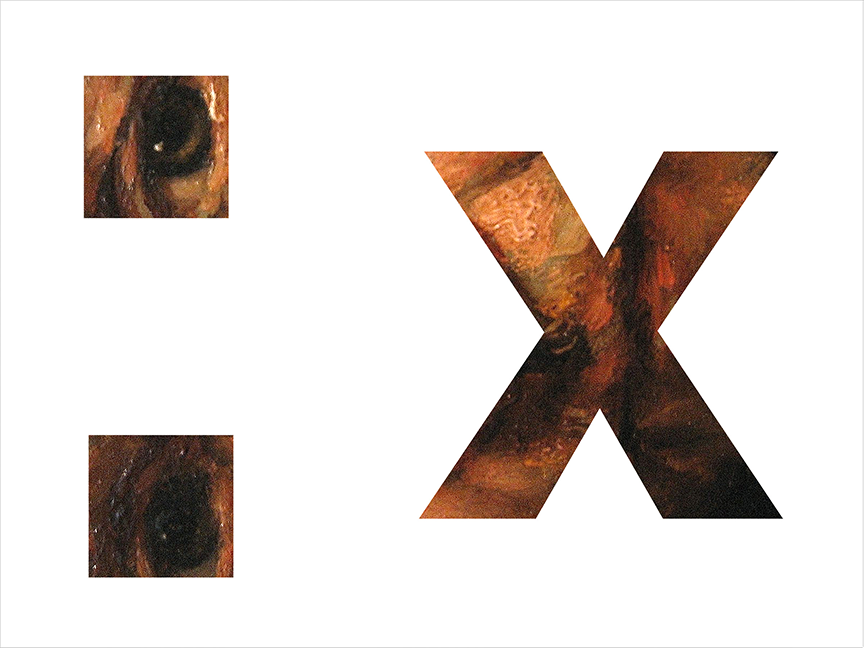 In the instance of Emoticanon, the emoticons have been placed over details of faces from famous portraits throughout art history. The emoticons provide a new context to the paintings that appear, and disappear, underneath the enlarged outlines of the text. While many of the paintings are still recognizable, the emoticons obscure key parts, usually leaving the eyes and mouths visible and emphasizing new formations of positive space in the otherwise blank canvases. While they can be contextualizing in a short written message, emoticons lack the nuances of say, a detailed study of one's face. By layering the emoticon and portrait, interpretation must work through both cultural icons and the ways in which they clash, or work, with each other.